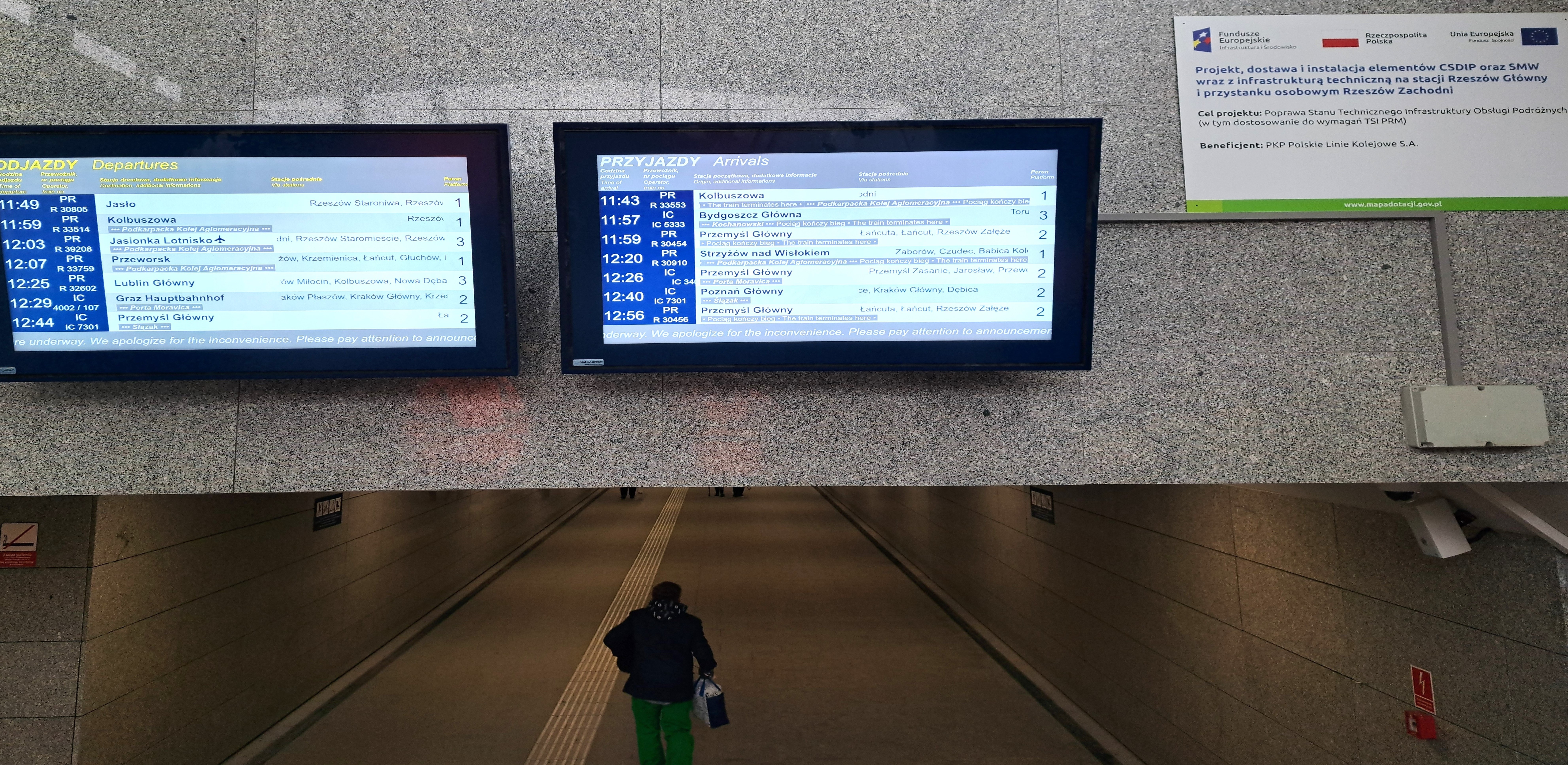 Na stacji Rzeszów Główny podróżni zyskali lepszą dostępność do informacji pasażerskiej. PKP Polskie Linie Kolejowe S.A. uruchomiły nowy system wyświetlaczy i komunikatów głosowych na peronach i w przejściu podziemnym. Inwestycja została zrealizowana za ponad 8 mln zł netto ze środków POIiŚ.