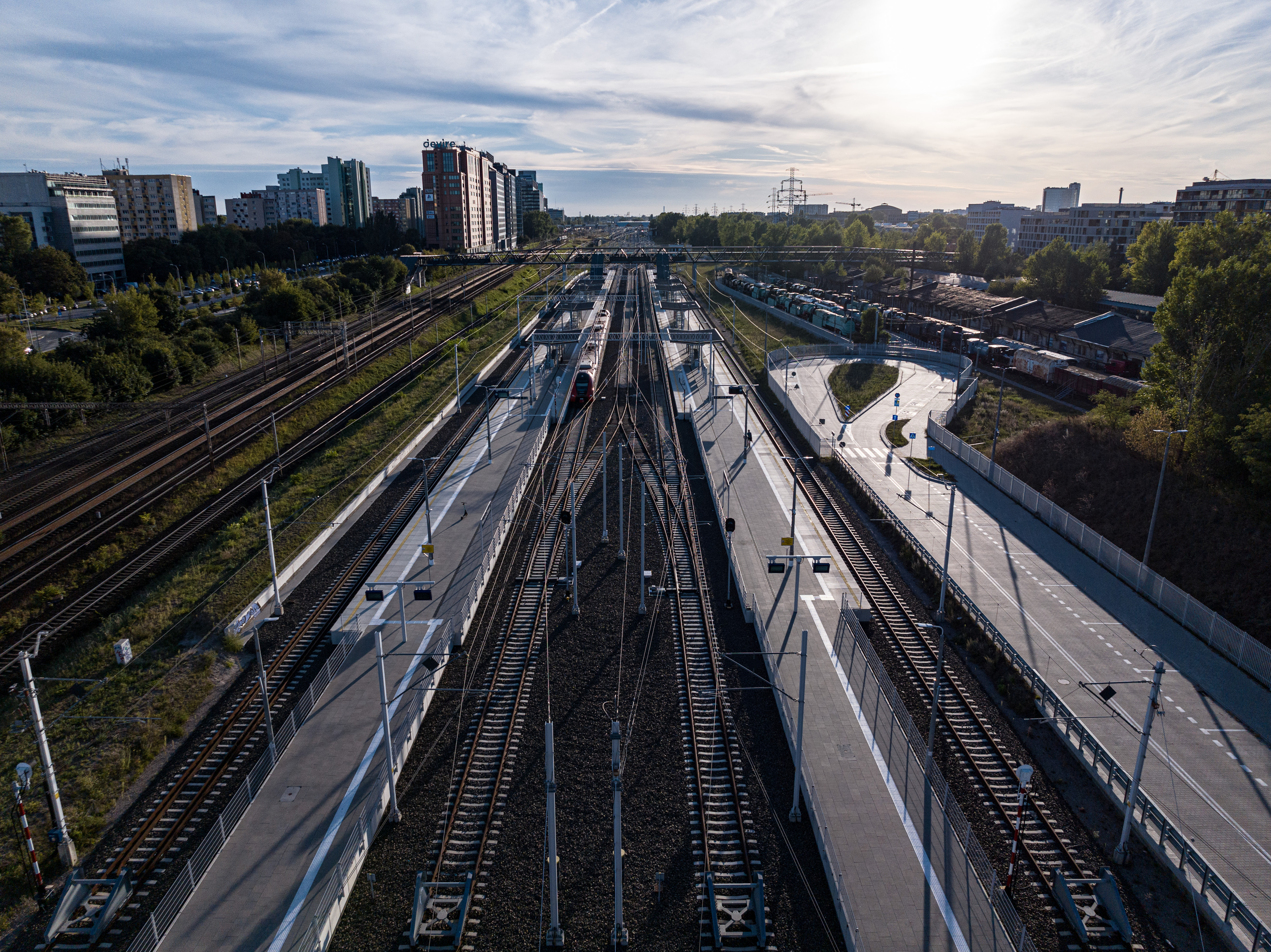 peron, kładka, Warszawa Główna, zdjęcia z drona, wieżowce