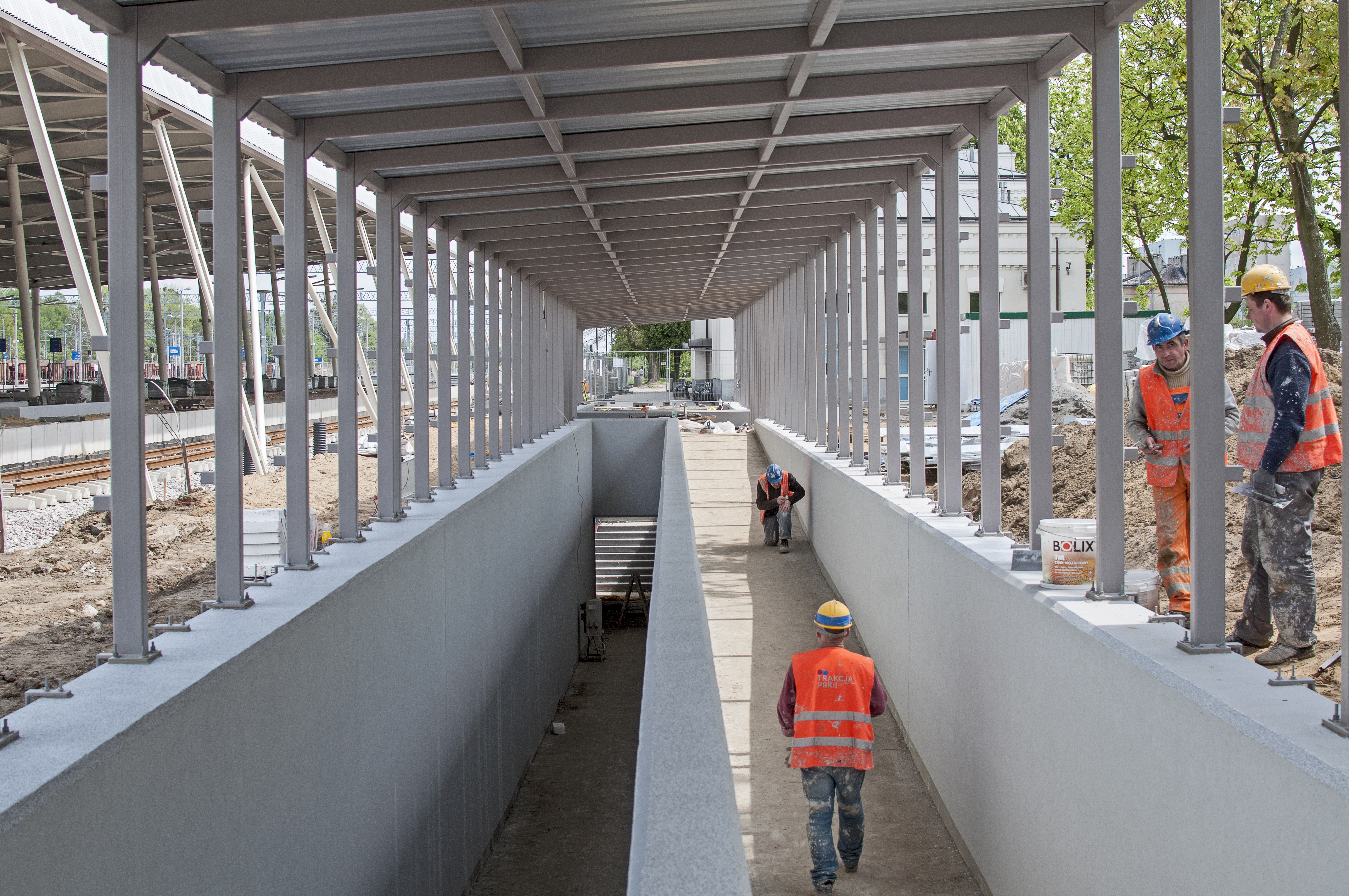Stan na maj 2015 r.: PLK prowadzi ostatnie prace wykończeniowe na stacji Łódź Widzew. Za trzy miesiące pasażerowie będą mieli do dyspozycji nowe, w pełni zadaszone perony i wygodne przejście podziemne. Podróżni będą mogli korzystać z wygodnego przejścia podziemnego dostosowanego do potrzeb osób o ograniczonej mobilności. Z budynku dworca do korytarza prowadzi pochylnia, a na perony będzie można dostać się jedną z trzech wind. Łódź Widzew jest kluczową stacją łódzkiego węzła kolejowego. Stąd biegną tory w kierunku Łodzi Kaliskiej, budowanej Łodzi Fabrycznej i po nowo uruchomionej w 2014 roku linii do Zgierza. Inwestycja na stacji objęła budowę torów o łącznej długości ponad 40 km. Zbudowano 10 nowych torów, z czego 6 przeznaczonych jest dla pociągów pasażerskich, 2 dla ruchu towarowego, a ostatnie 2 do obsługi technicznej składów. Nad torami rozciągnięto sieć trakcyjną o łącznej długości 55 km, zamontowano 90 rozjazdów. Perony o długości 400 metrów są wyższe od dotychczasowych i ułatwiają pasażerom wsiadanie do pociągów. Stacja została też wyposażona w wyświetlacze z informacją pasażerską, nagłośnienie, gabloty na rozkłady jazdy i ławki. Nad torami i peronami rozciąga się szerokie zadaszenie. Prace realizowane na zlecenie PLK na stacji Łódź Widzew są częścią projektu obejmującego m.in. budowę torów dojazdowych do tunelu do Łodzi Fabrycznej oraz modernizację kolejowej obwodnicy Łodzi od stacji Łódź Widzew przez Łódź Chojny do stacji Łódź Kaliska. Całkowity koszt umowy wynosi blisko 239 mln zł. Fotografie wykonano w maju 2015 r.