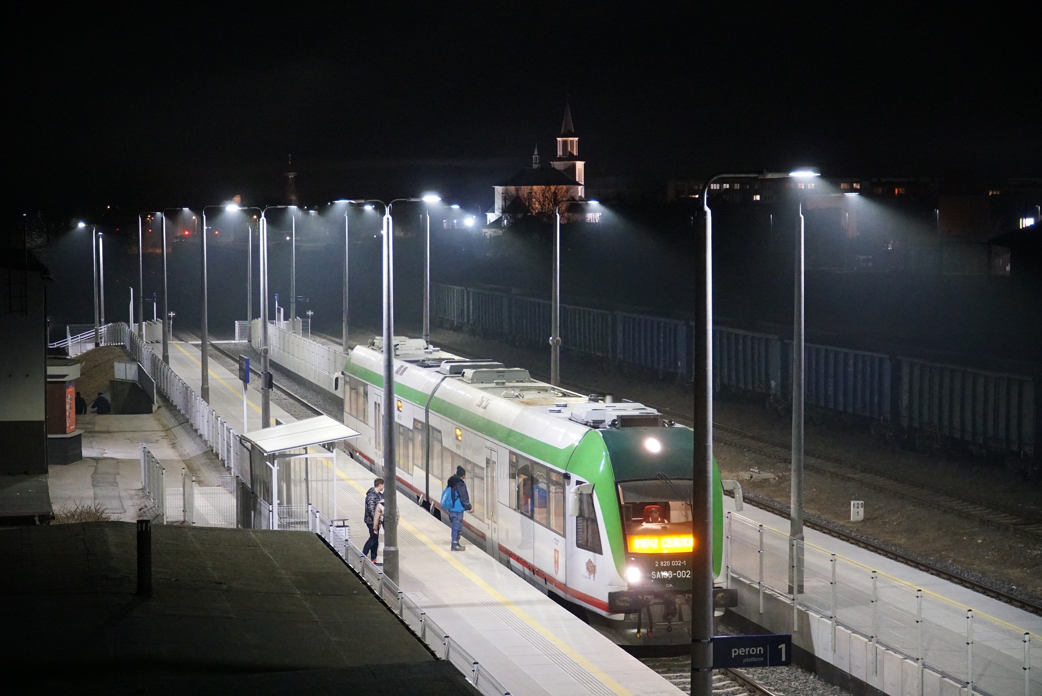 stacja, pociąg, Hajnówka, oświetlenie LED