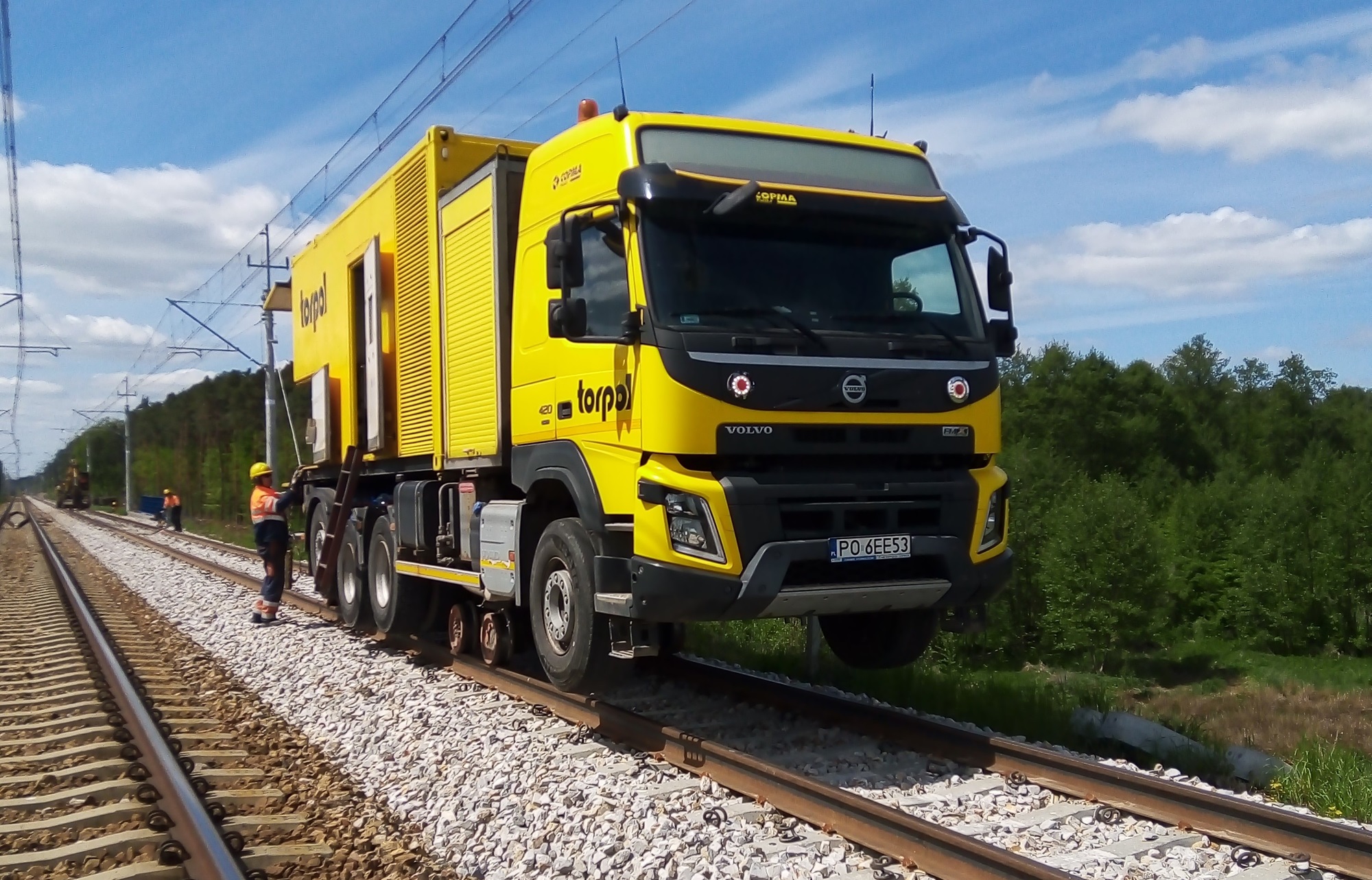 PLK-2025-07-21-Z-Tomaszowa-Mazowieckiego-do-Radomia-z-predkoscia-120-km-h-polmetek-rewitalizacji-Maszyna-dwudrogowa-na-torach-na-odcinku-Radzice-Wolanow-fot.jpg