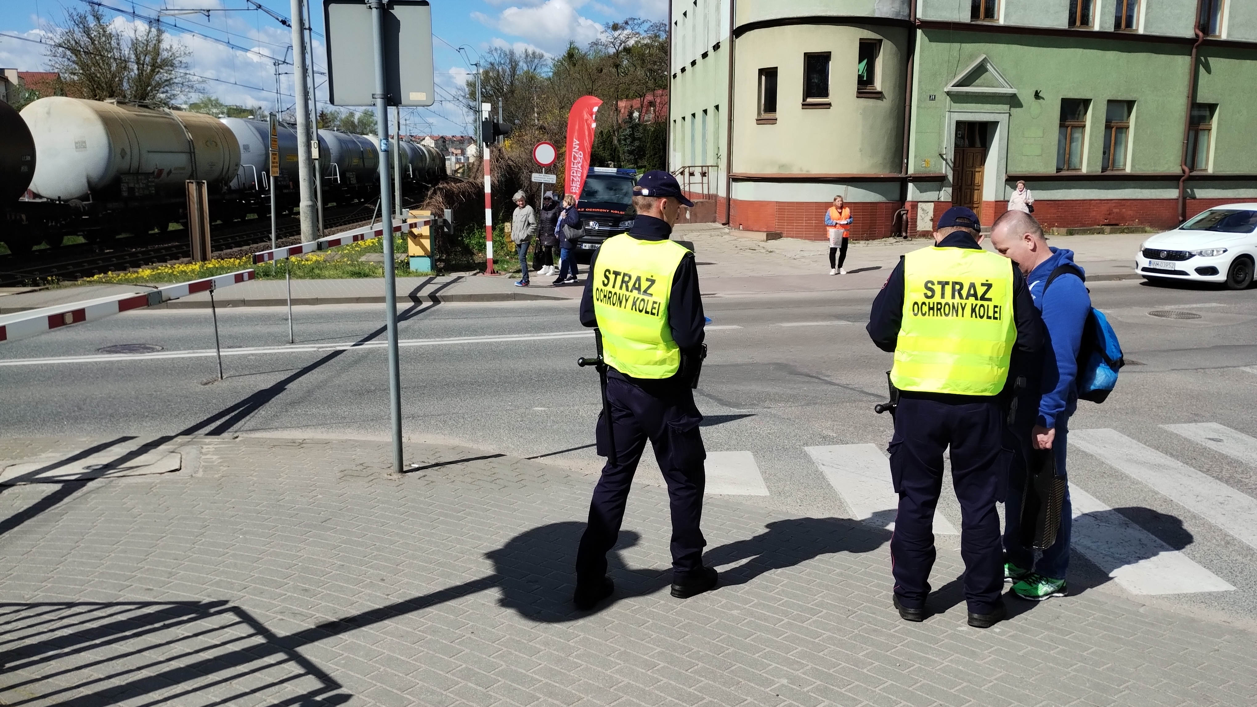 PLK-2023-04-28-Kolejarze-apeluja-o-bezpieczenstwo-na-przejazdach-w-drodze-na-majowke-Przedstawiciele-SOK-rozmawiaja-z-pieszym-przy-przejezdzie-kolejowo-drogowym-w-Ilawie-fot.jpg