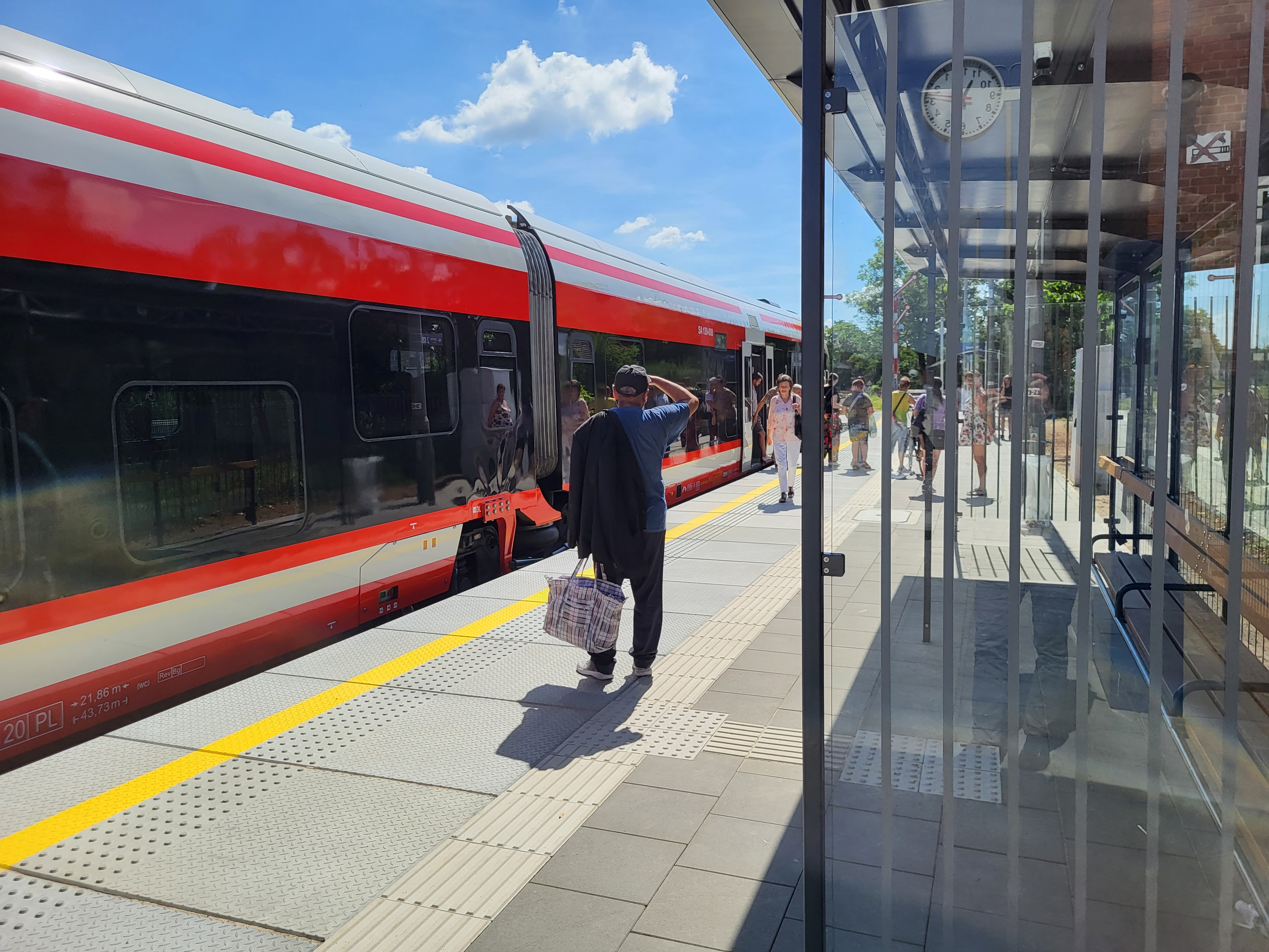 PLK-2023-07-26-Do-pociagu-z-nowego-peronu-w-Grodzisku-Wielkopolskim-Pociag-przy-zmodernizowanym-peronie-w-Grodzisku-Wielkopolskim-po-prawej-wiata-w-tle-podrozni-fot.jpg