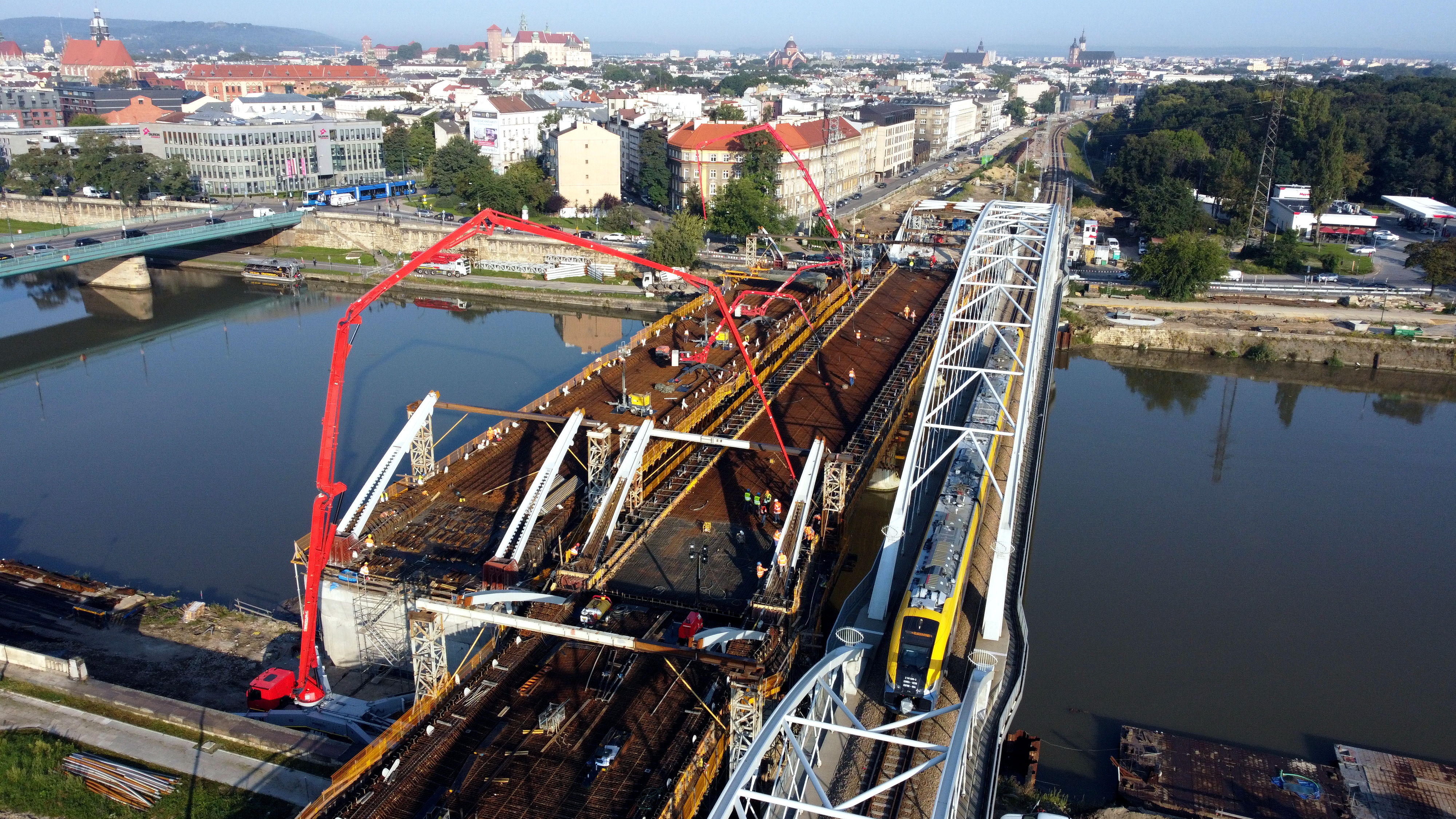 PLK-2021-09-29-Krakow-nowoczesna-kolej-z-historia-Pociag-przejezdza-obok-budowanych-nowych-mostow-nad-Wisla-fot.jpg