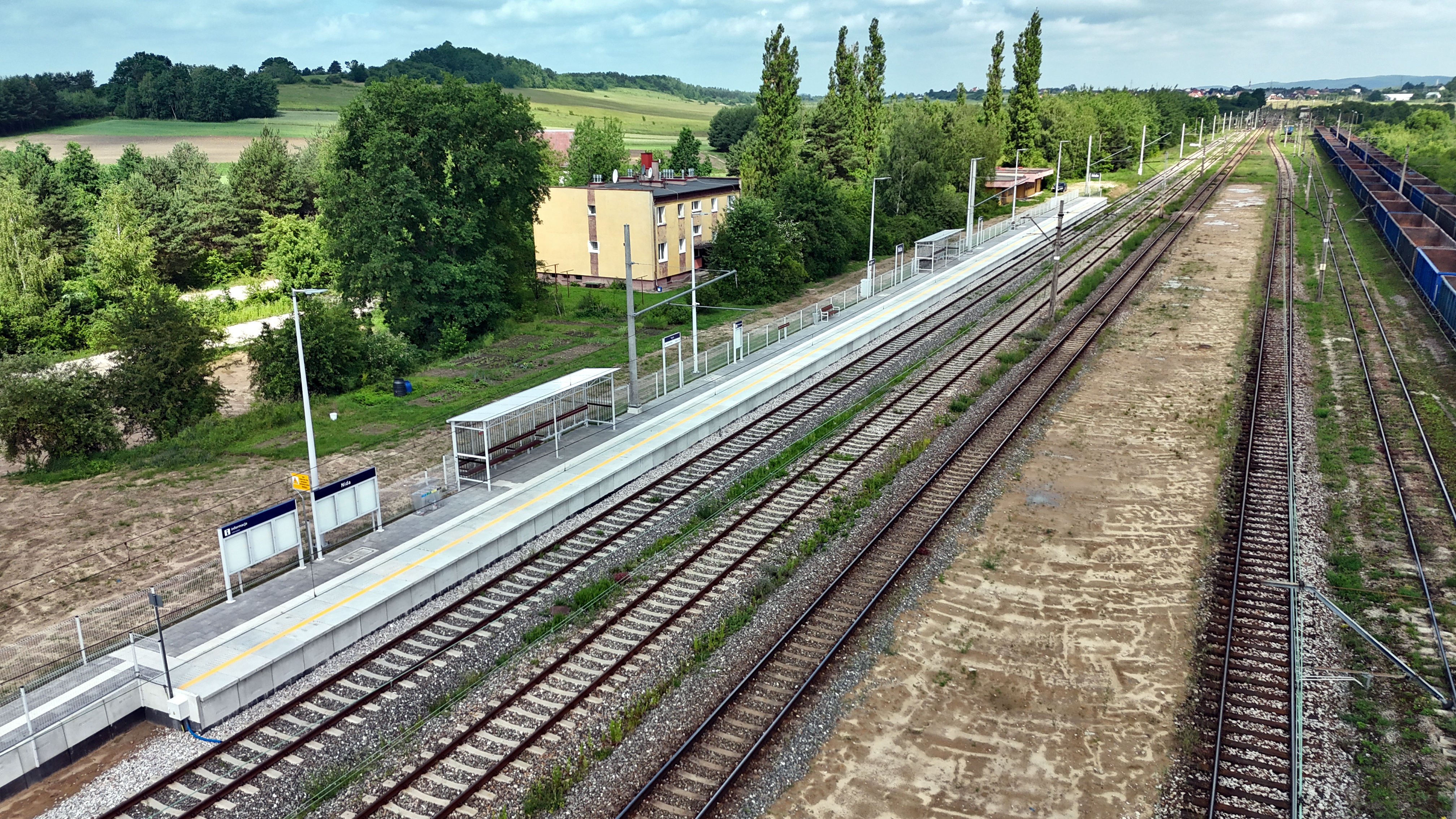 PLK-2024-06-07-Nowe-przystanki-na-linii-Kielce-Busko-Zdroj-ulatwia-podroze-w-wojewodztwie-swietokrzyskim-Widok-z-lotu-ptaka-na-stacje-kolejowa-w-Nidzie-fot.jpg