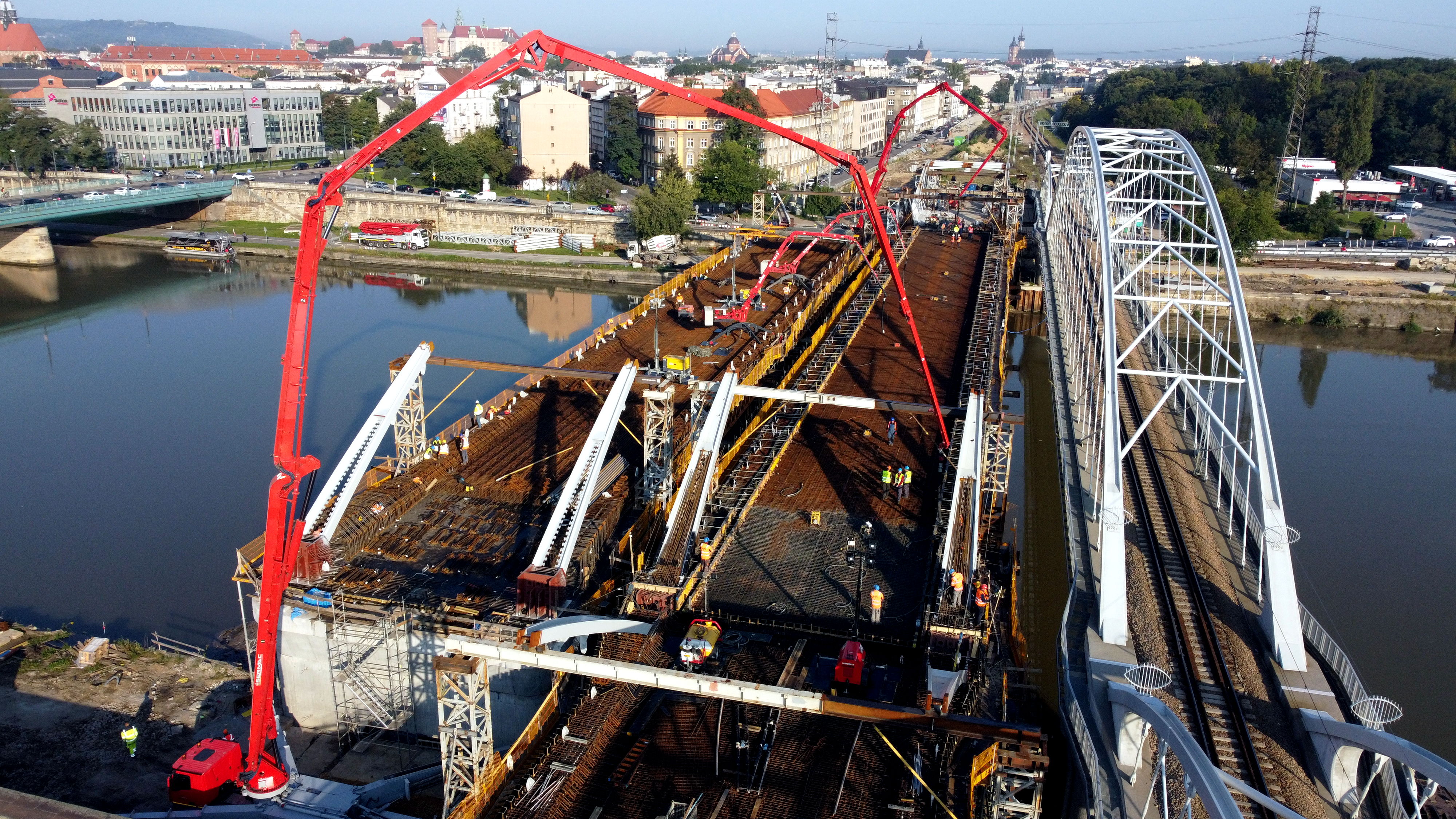 PLK-2021-09-08-Kluczowy-etap-budowy-nowego-mostu-kolejowego-nad-Wisla-Betonowanie-mostu-kolejowego-nad-Wisla-na-horyzoncie-Kosciol-Marciacki-i-Wawel-fot.jpg