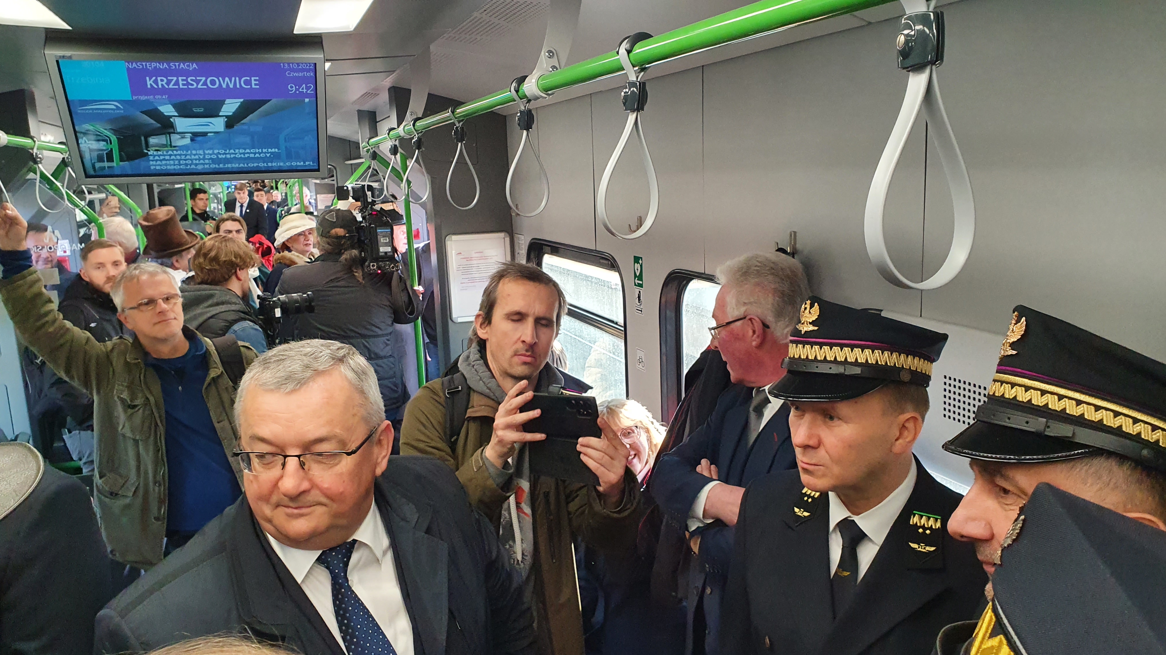 PLK-2022-10-13-175-lat-podrozujemy-koleja-z-Malopolski-na-Slask-Andrzej-Adamczyk-minister-infrastruktury-Piotr-Majerczak-czlonek-zarzadu-PLK-w-pociagu-z-okazji-175-rocznicy-kolei-w-Krakowie-fot.jpg
