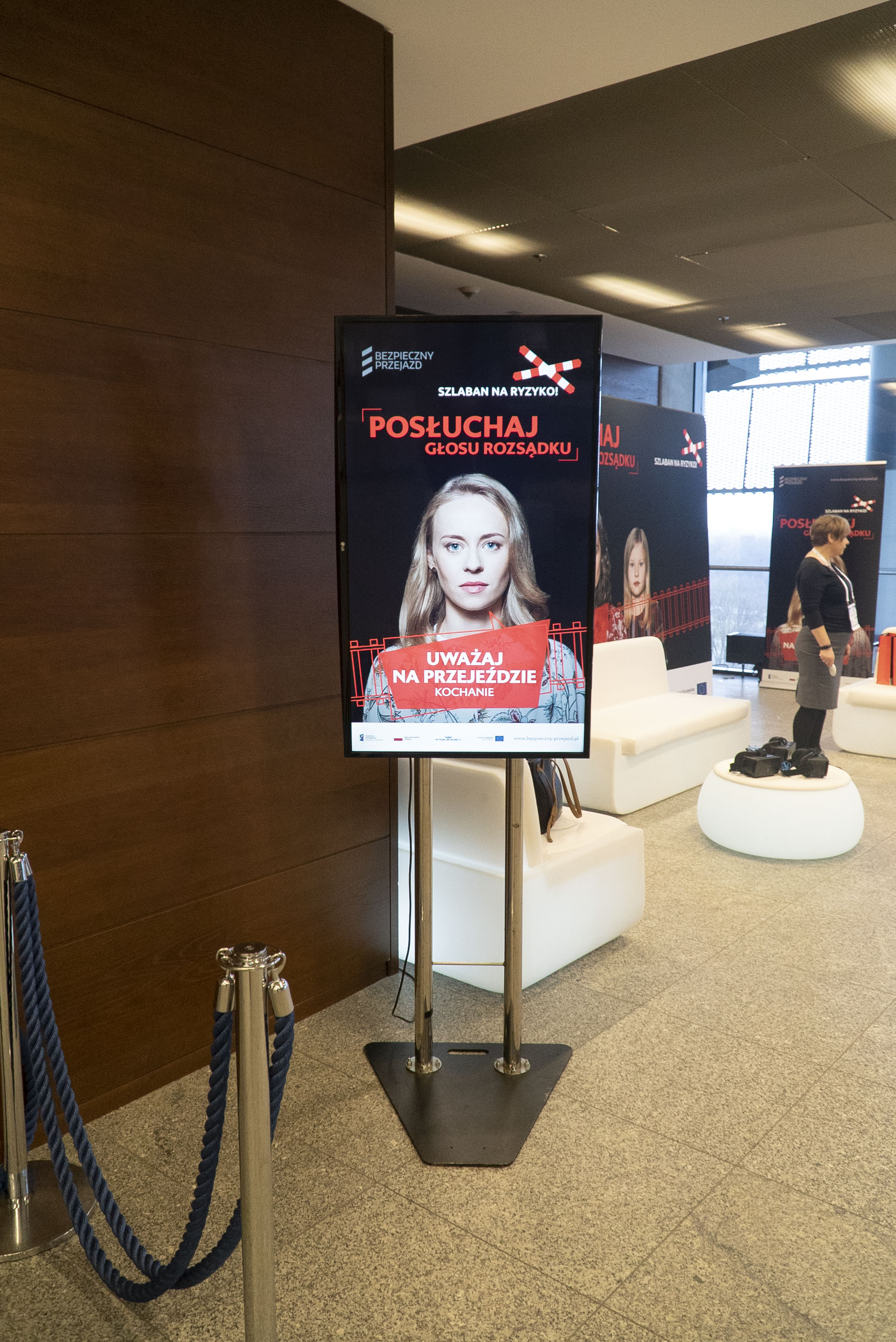 Stoisko kampanii społecznej "Bezpieczny przejazd..." na II Kongresie Rozwoju Kolei, który odbył się 29 stycznia 2020 r. na Stadionie PGE Narodowym.
