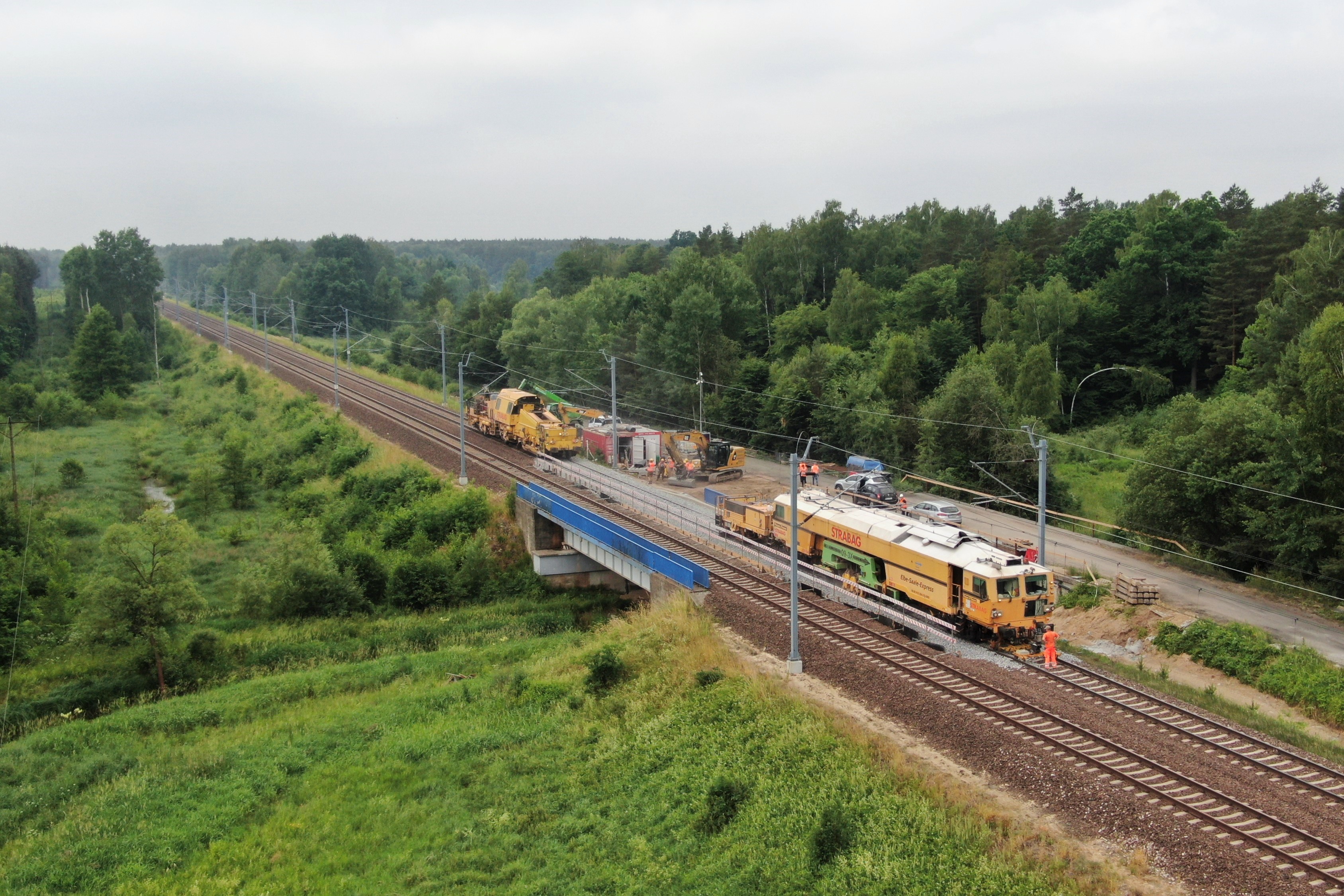 PLK-2021-07-02-Nowe-wiadukty-i-mosty-na-CMK-po-testach-stutonowych-lokomotyw-podbijarka-torowa-pracuje-na-moscie-kolejowym-na-CMK-widok-z-gory-fot.jpg