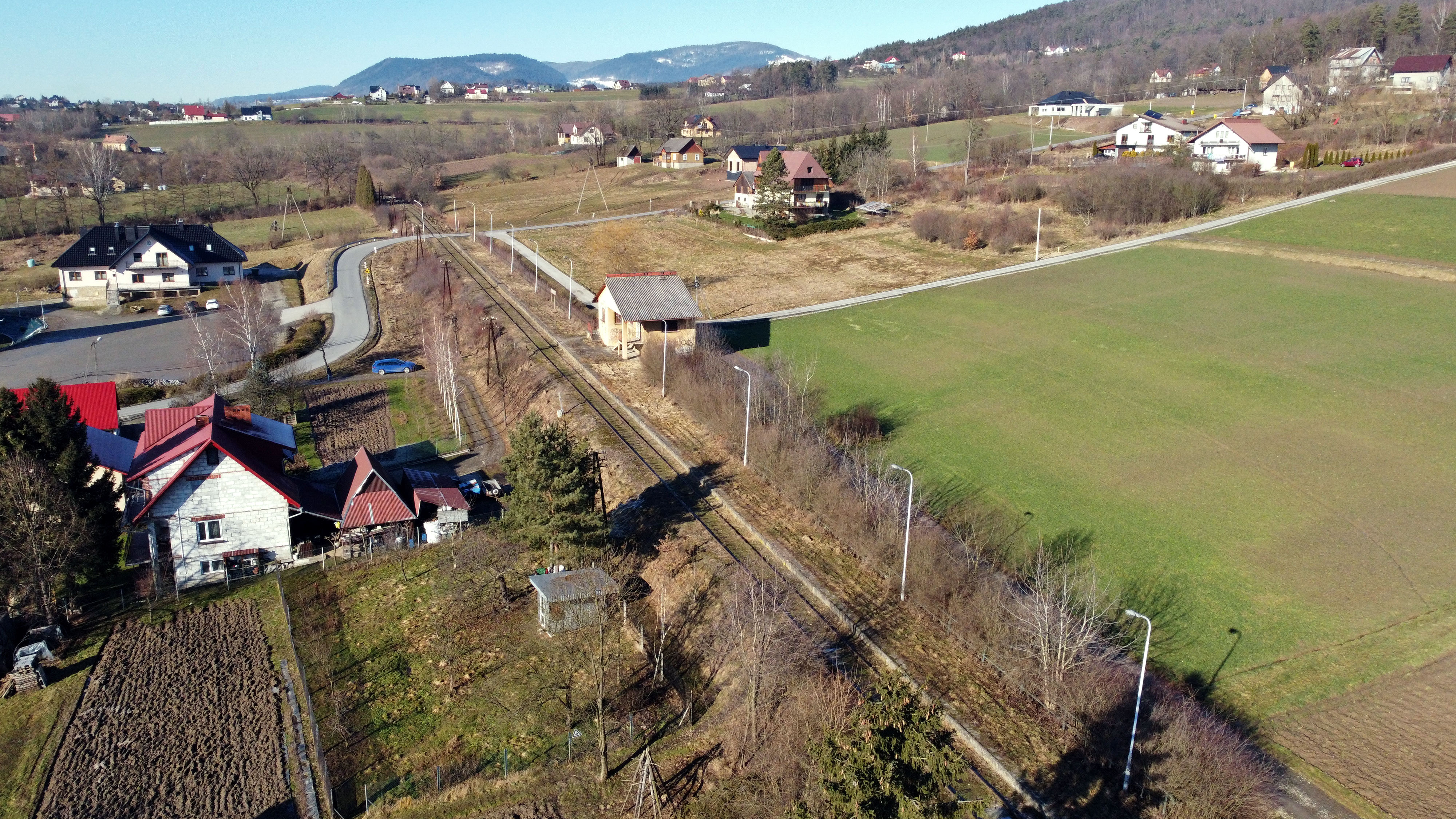 PLK-2024-03-08-Tunel-kolejowy-pod-gorami-usprawni-przejazd-pomiedzy-Limanowa-a-Nowym-Saczem-Widok-z-lotu-ptaka-na-peron-w-Chomranicach-fot.jpg