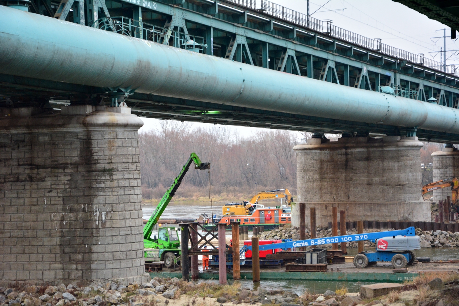 Barki, dźwigi i rusztowania pomagają zdjąć i przetransportować dziewięć przęseł Mostu Gdańskiego na praski brzeg. Wykonawca zdjął już tory i sieć trakcyjną. Stare konstrukcje zastąpione zostaną nowymi, przystosowanymi do cięższych pociągów i wyższych prędkości. Efektem prac będzie sprawniejszy ruch pociągów w Warszawie. Inwestycja PKP Polskich Linii Kolejowych S.A. warta jest ponad 75 mln zł.