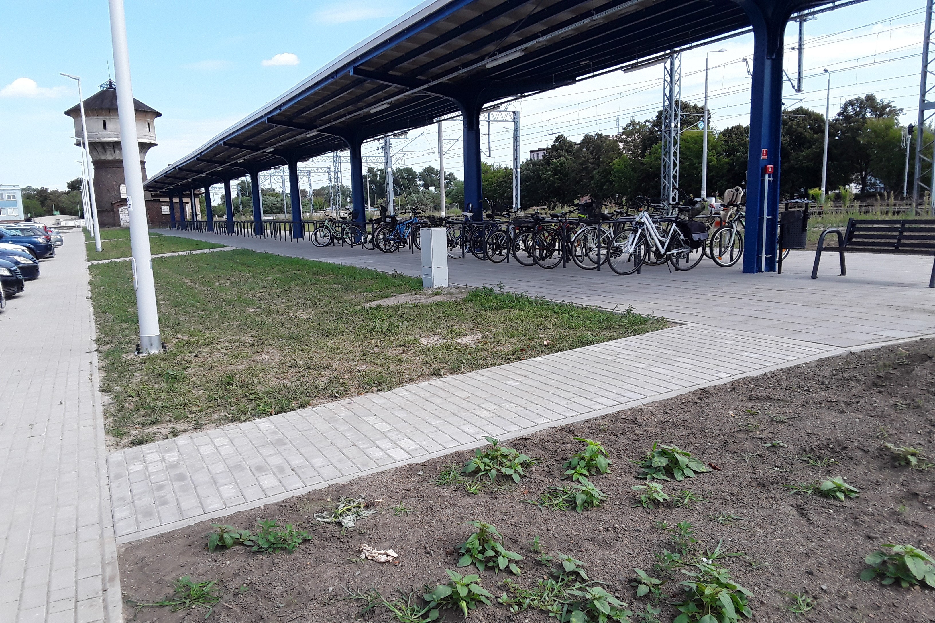 Kościan, stacja, wiata, stojak rowerowy, rower