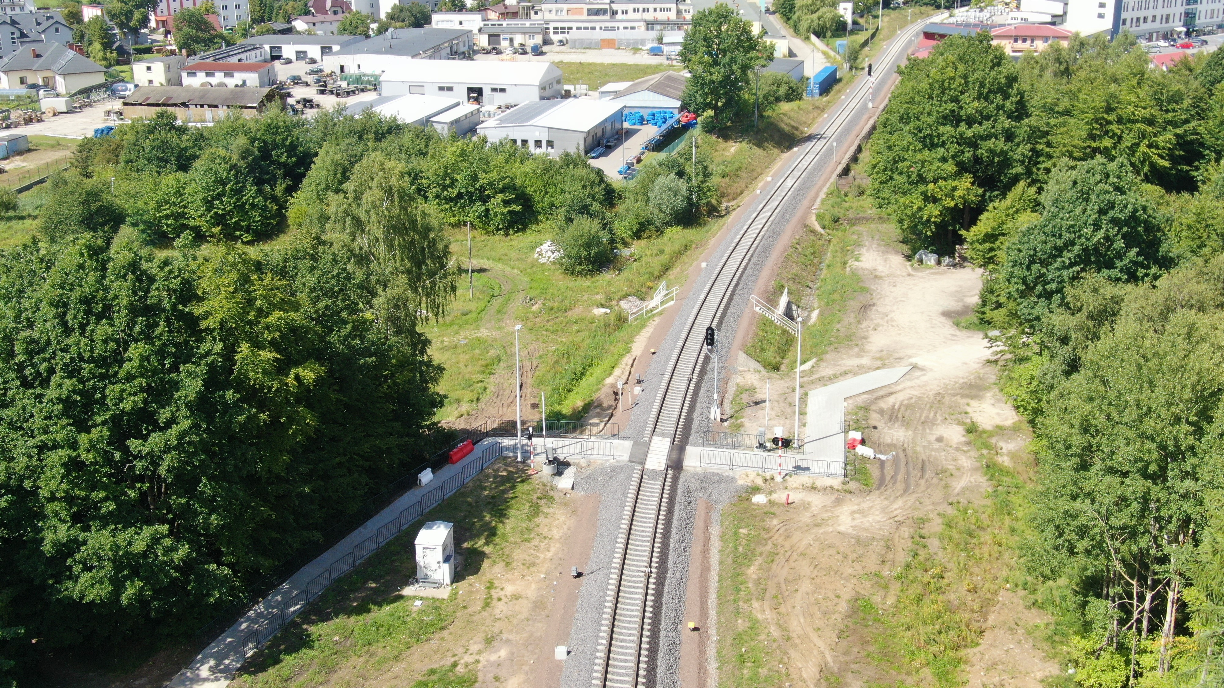 PLK-2023-08-18-Lokomotywa-sprawdzila-nowe-wiadukty-kolejowe-w-Kartuzach-Przejscie-dla-pieszych-w-poziomie-szyn-na-linii-Glincz-Kartuzy.jpg