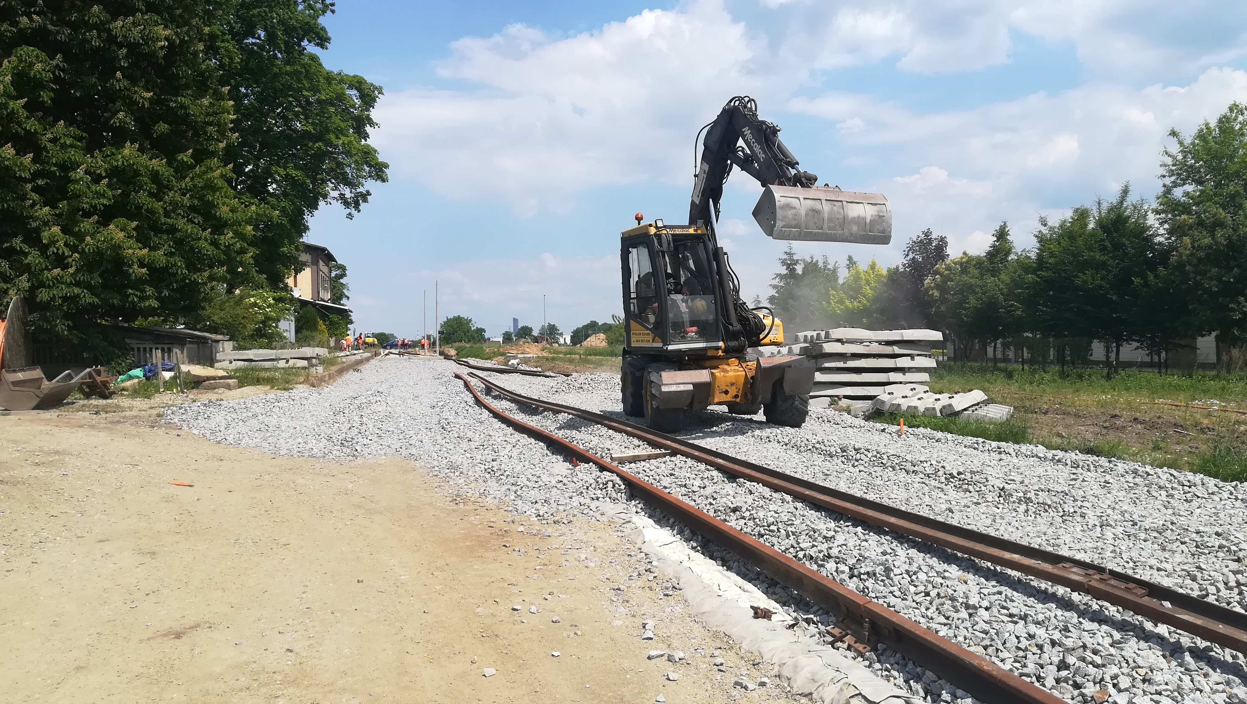 PLK-2021-06-07-Blizej-podrozy-pociagiem-z-Wroclawia-do-Swidnicy-i-pod-Sleze-Bielany-Wroclawskie-montaz-toru-na-zdjeciu-praca-koparki-przy-sypaniu-tlucznia-pod-nowy-tor-fot.jpg