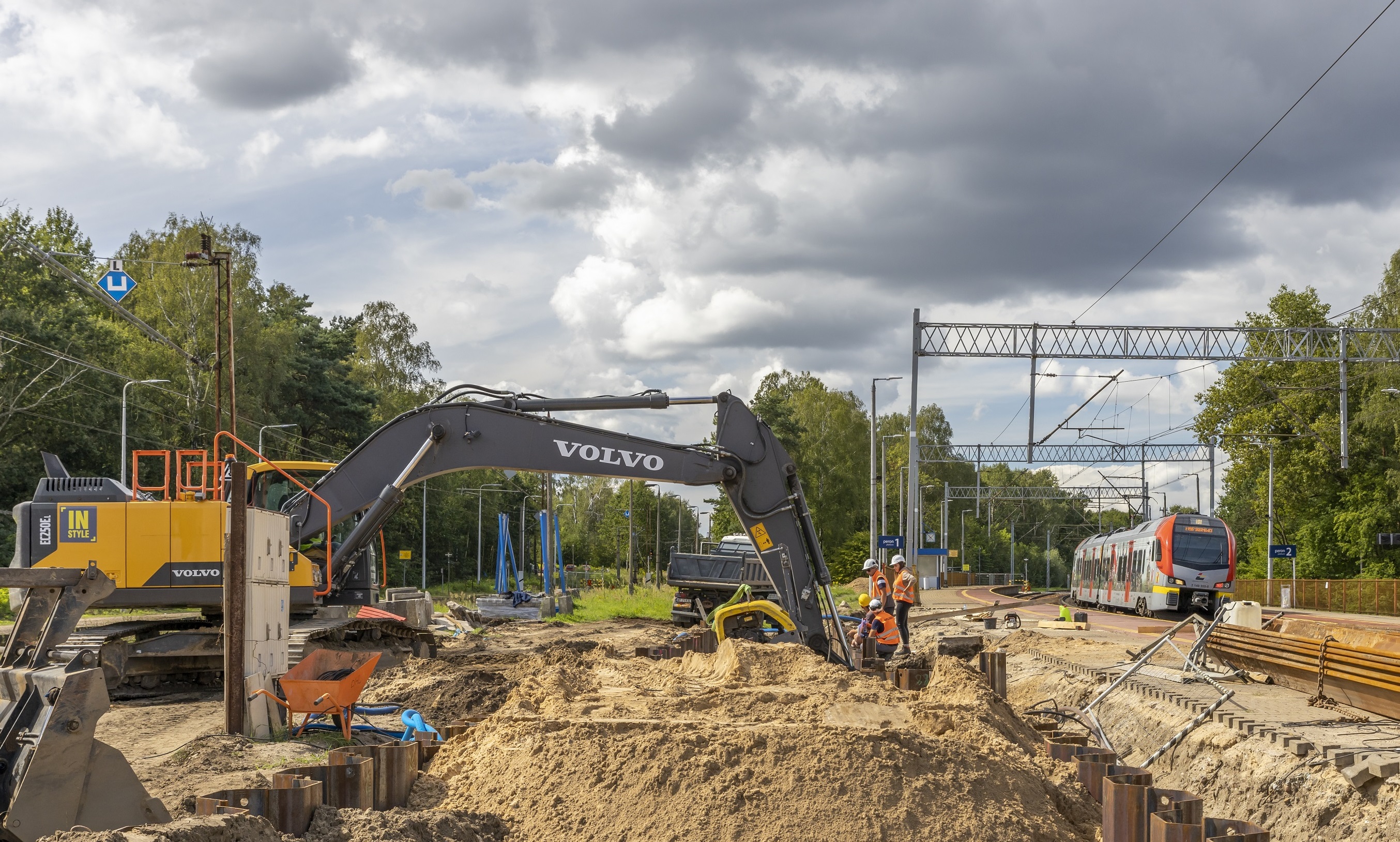 PLK-2022-09-15-Za-53-mln-zl-powstaja-bezkolizyjne-skrzyzowania-na-linii-Koluszki-Lodz-Budowa-wiaduktu-Andrespol-koparka-buduje-sciany-w-tle-pociag-na-torach-Lukasz-Brylowski.jpg