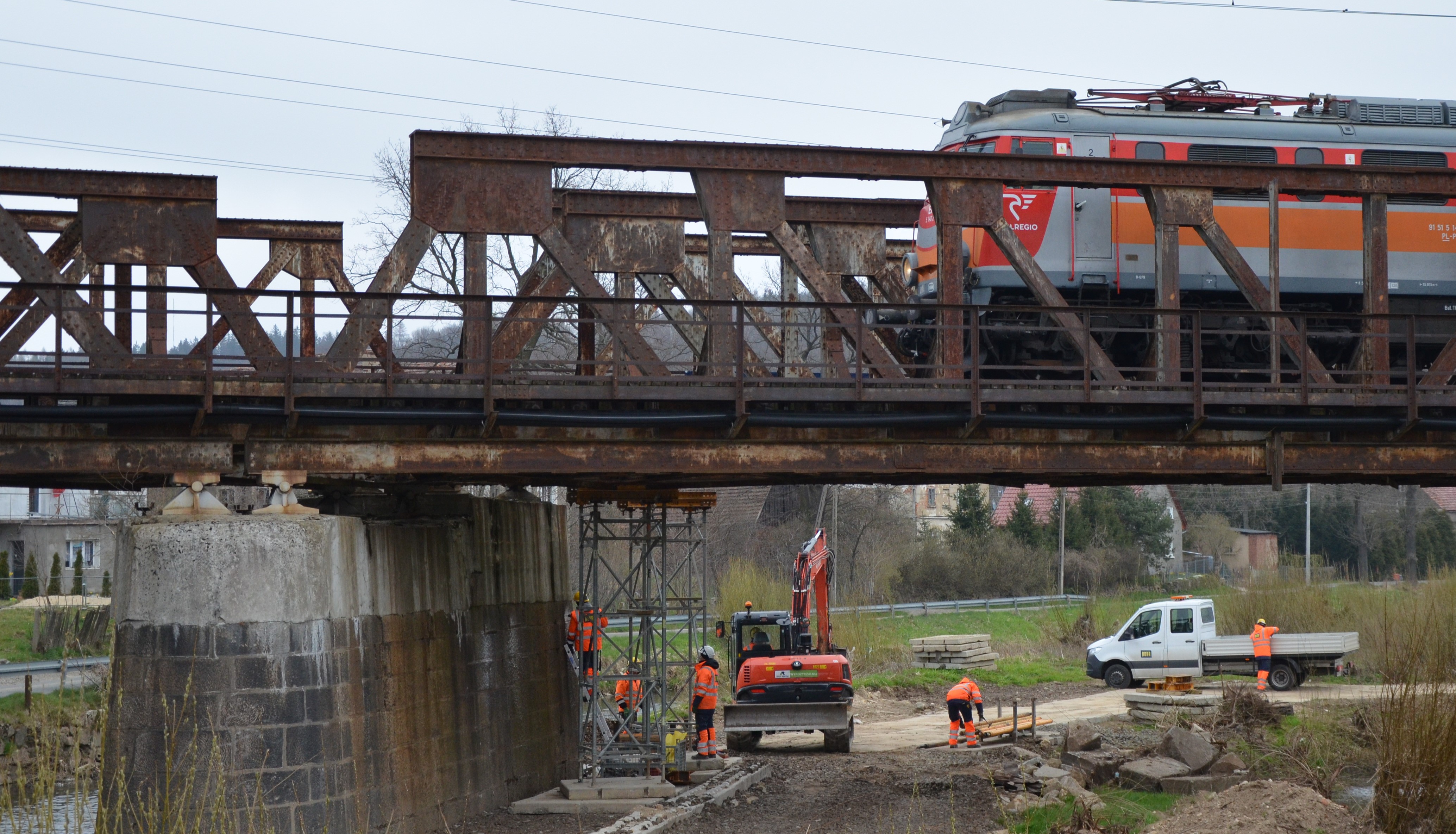 PLK-2025-04-28-Remontujemy-XIX-wieczne-mosty-na-potrzeby-kolei-XXI-wieku-Pociag-przejezdza-po-moscie-nad-Bobrem-podczas-prac.jpg