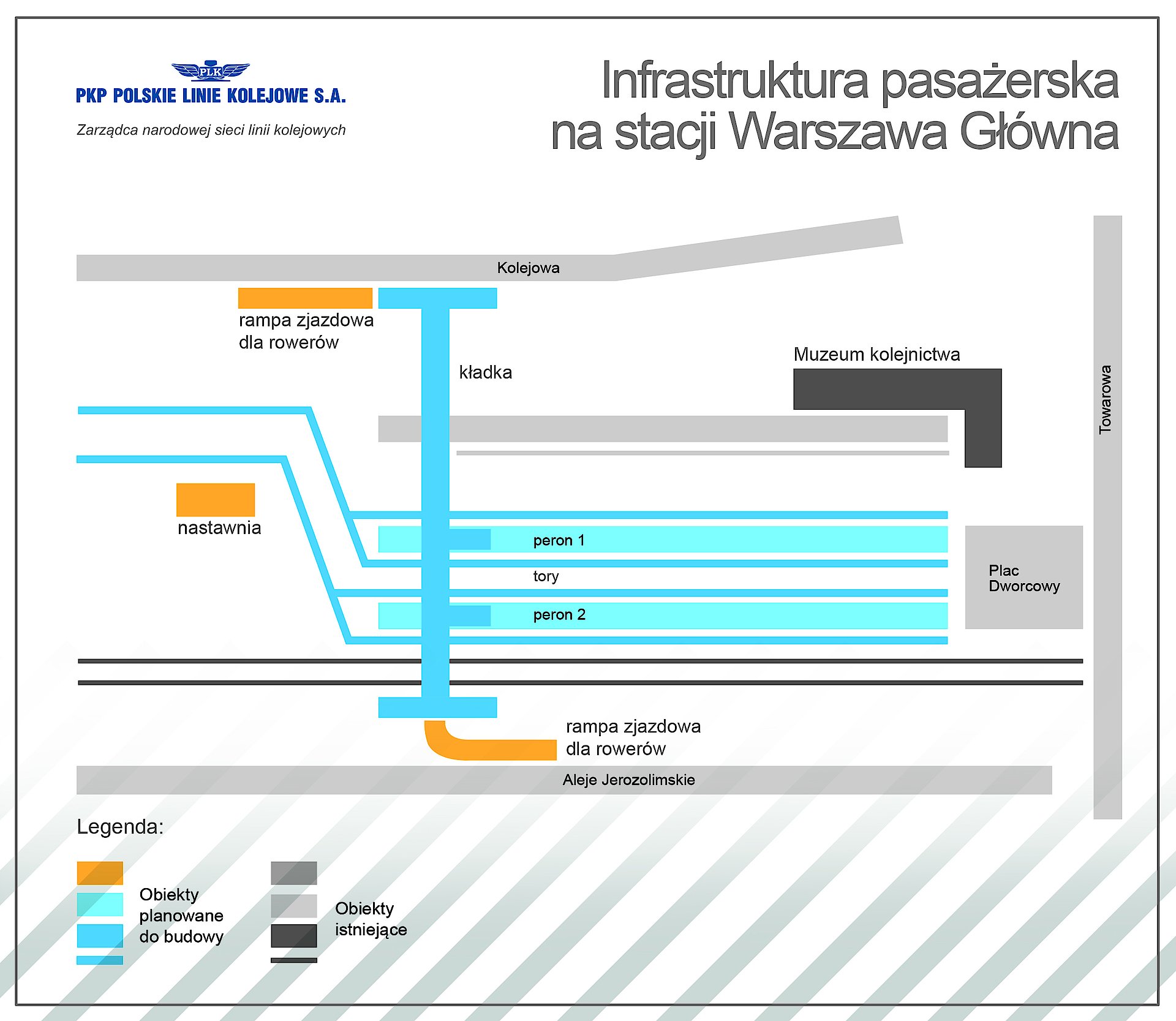 Przywrócenie ruchu kolejowego i obsługi pasażerów, wygodne perony, większa dostępność do kolei – to planowane efekty przebudowy stacji Warszawa Główna. PKP Polskie Linie Kolejowe S.A. podpisały umowę o wartości prawie 81 mln zł na wykonanie inwestycji. Projekt ten zostanie zrealizowany do III kwartału 2019 roku. Inwestycja PKP Polskich linii Kolejowych S.A. to kolejny projekt zwiększający dostęp do kolei w centrum miasta. Podobne zadania są realizowane m.in. w Krakowie i Poznaniu.