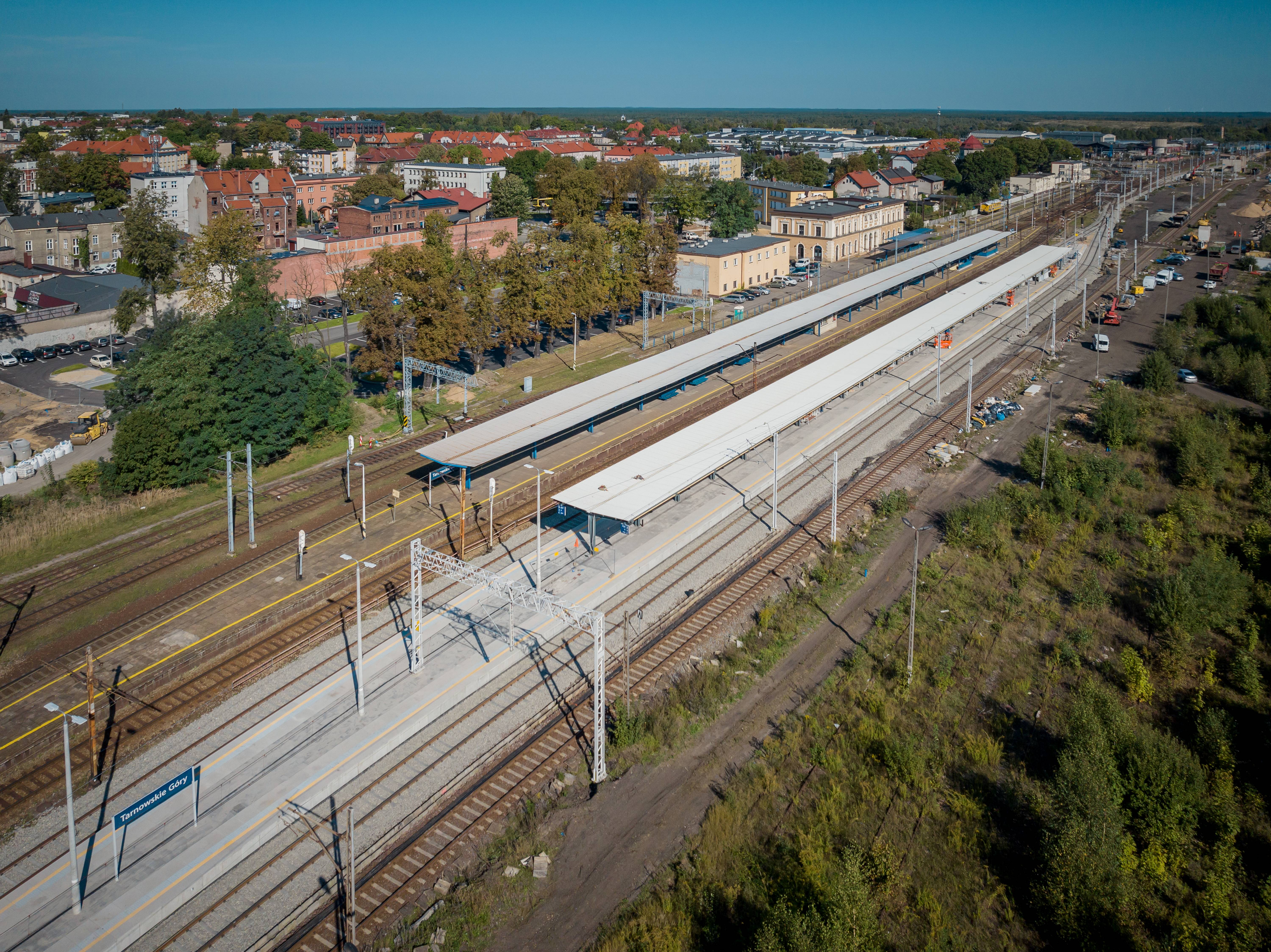 PLK-2023-10-09-Z-wygodnego-peronu-w-Tarnowskich-Gorach-do-portu-lotniczego-Katowice-Airport-Stacja-Tarnowskie-Gory-nowy-peron-widziany-z-lotu-ptaka-fot.jpg