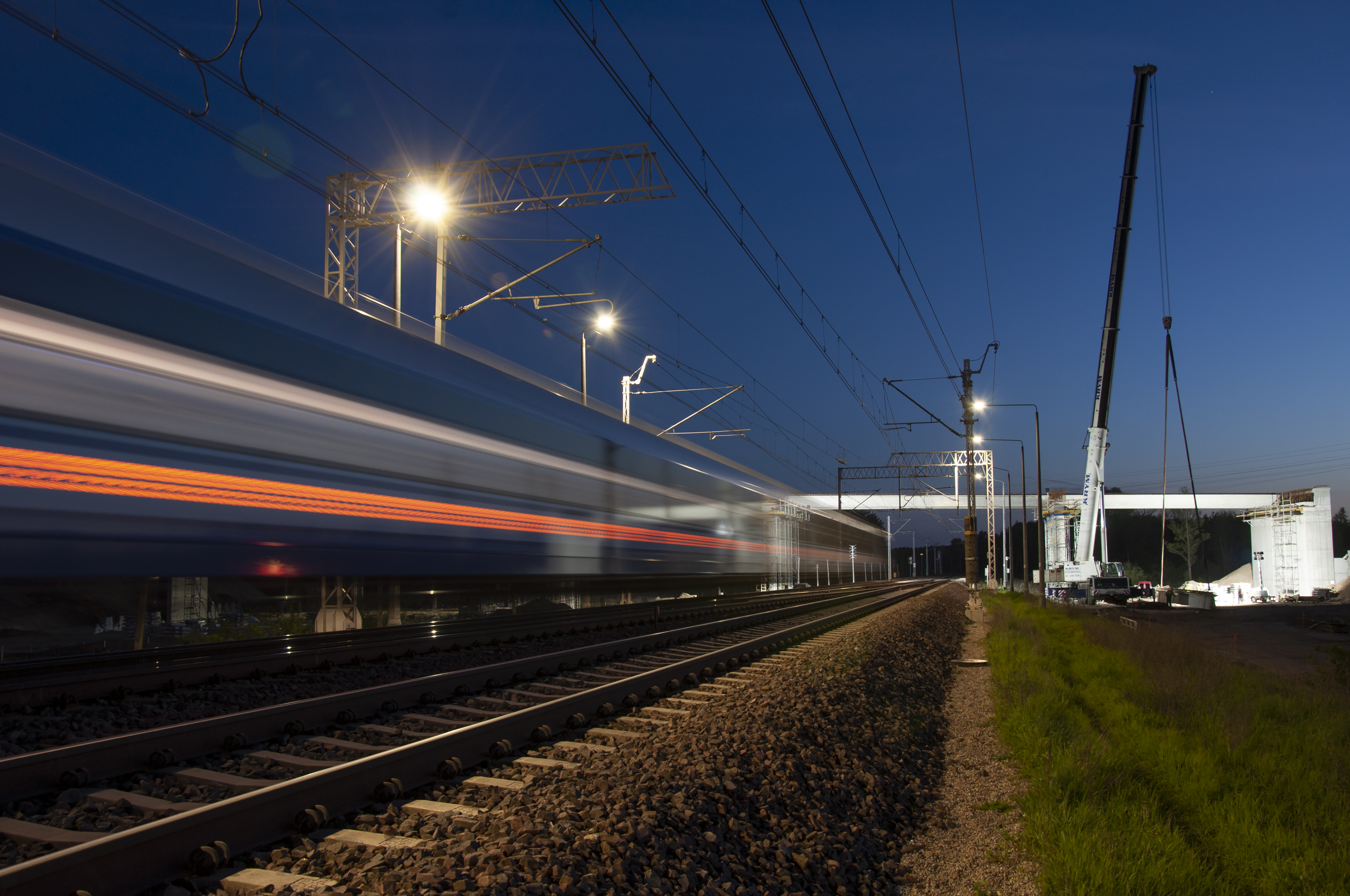 E75, Rail Baltica, CEF, budowa wiaduktu, zdjęcia nocne